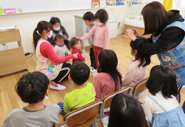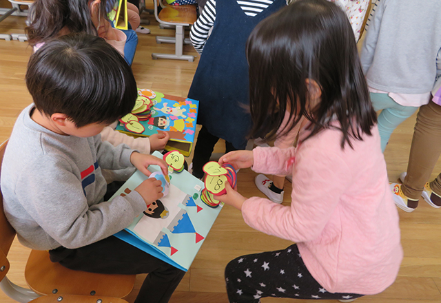 5月第三週目に保育参観がありました。英語の授業や親子での製作を通して普段の保育の様子を体験してもらいました。