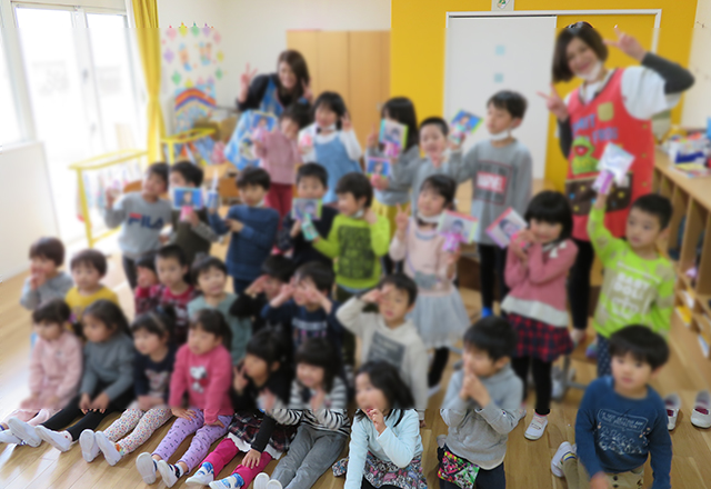 6月21日、マザークラブというボランティアによるパネルシアターがありました。次々と変わるパネルや大きなチョウチョにみんな大喜びでした。